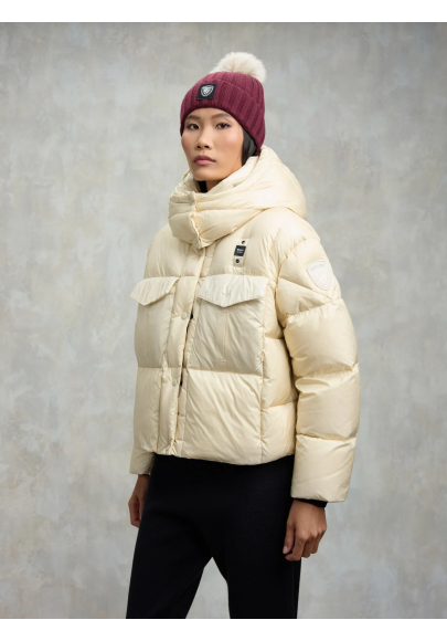 Plumífero largo acolchado a rayas horizontales e interior en contraste de color. Prenda con relleno natural suave, cálido y poco voluminoso, de colores fashion y corte que realza la cintura.