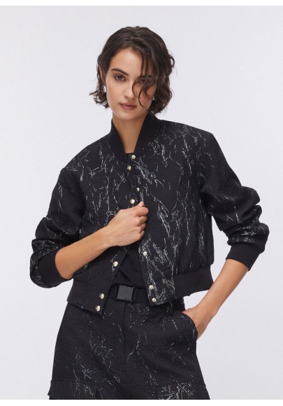 Chaqueta bomber de cuadros en tonos beige, negro y gris. Tejido de mezcla con lana, corte recto con bajo con flecos. Cierre frontal de cremallera dorada y puños de canalé. Cuello desmontable de pelo sintético en color beige. Interior con forro estampado.