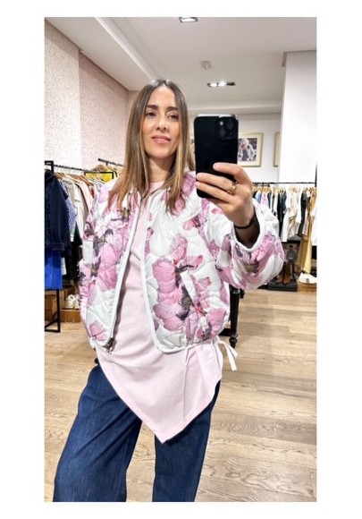 Chaqueta bomber de cuadros en tonos beige, negro y gris. Tejido de mezcla con lana, corte recto con bajo con flecos. Cierre frontal de cremallera dorada y puños de canalé. Cuello desmontable de pelo sintético en color beige. Interior con forro estampado.